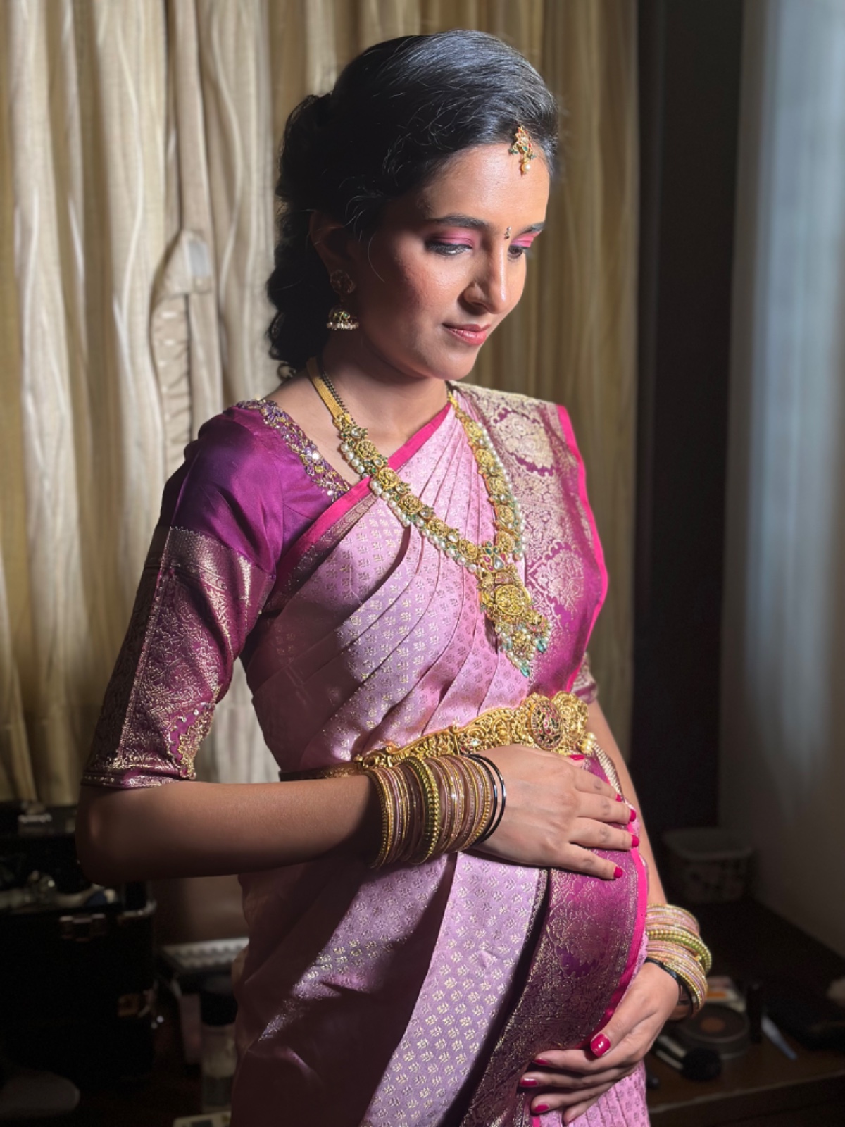 Soft and radiant makeup to celebrate the joyous occasion of welcoming a new addition to the family.